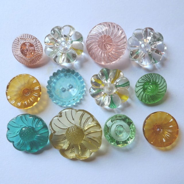 チェコのアンティークガラスボタン、