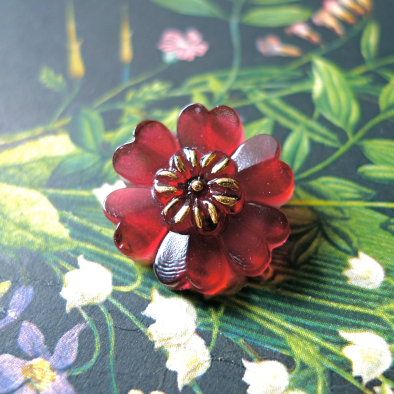 葡萄色お花形 チェコガラスボタン