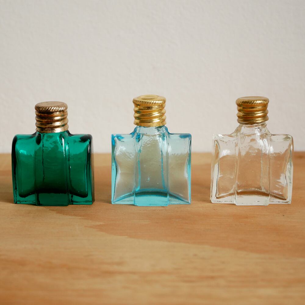 ガラスボタンの製造が盛んだった頃に、同じ型抜きの製法でつくられたこの小瓶達。