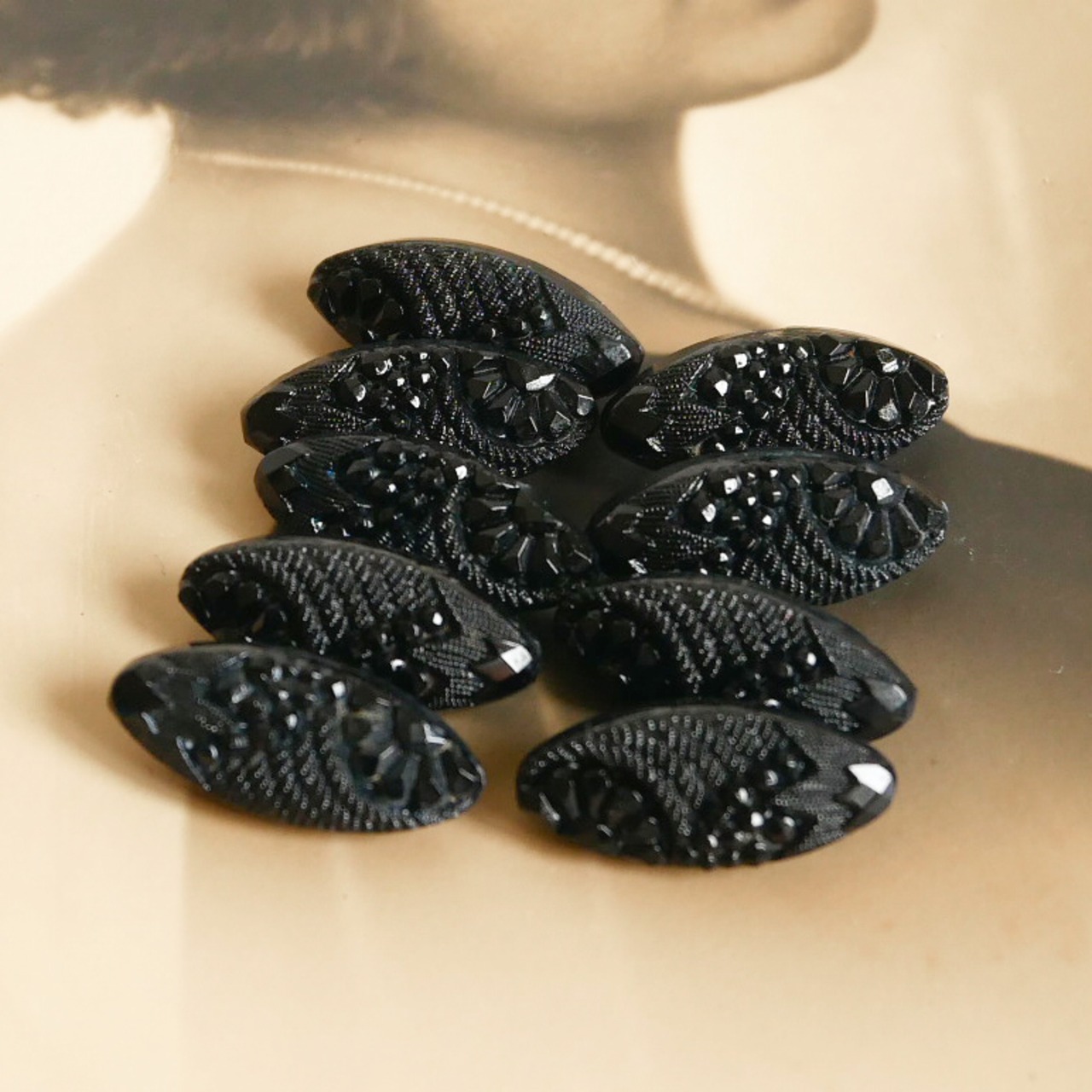 黒のヴィンテージボタン 小さな紡錘形 3個セット