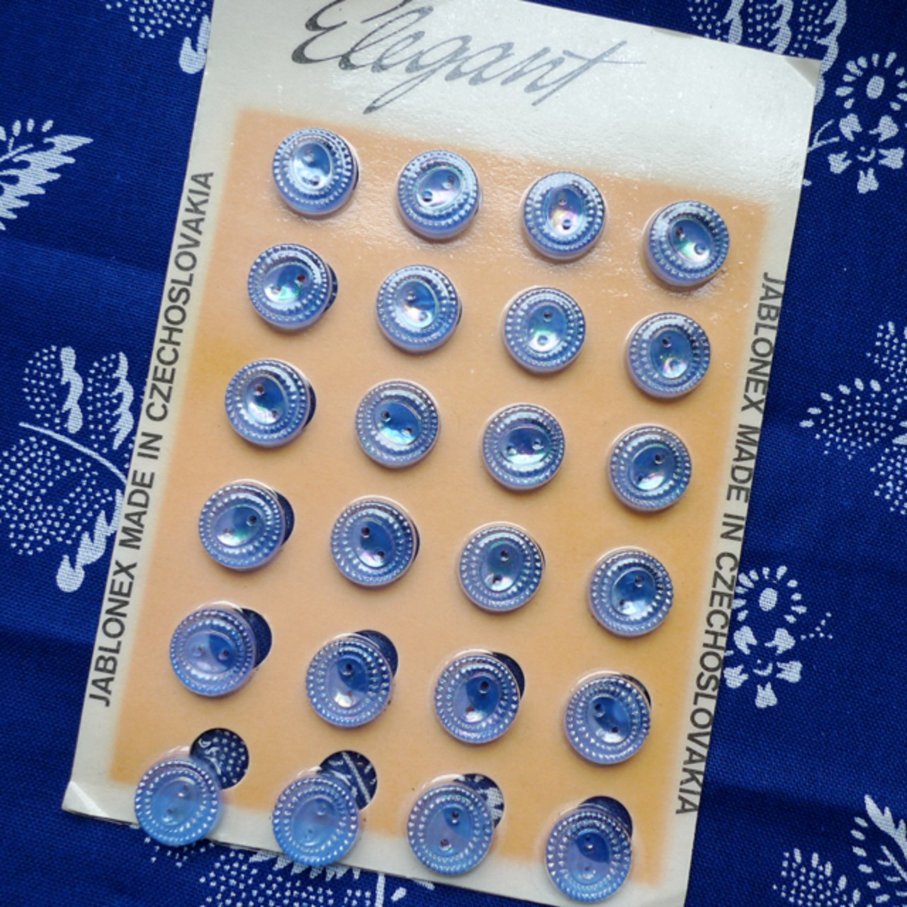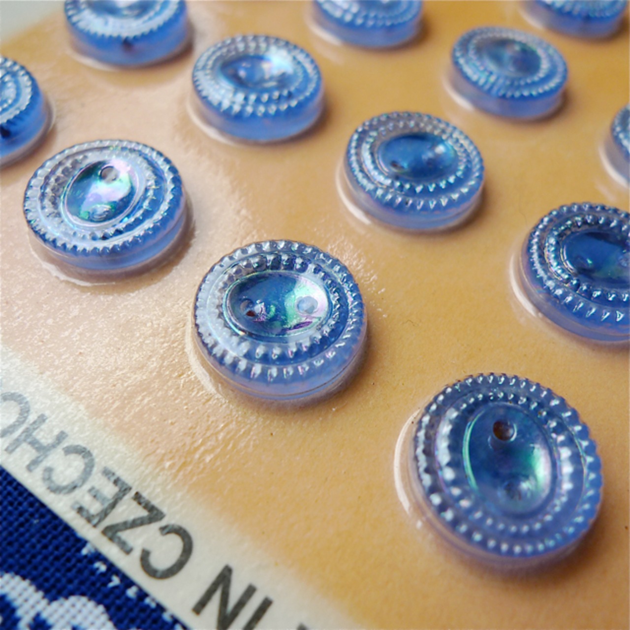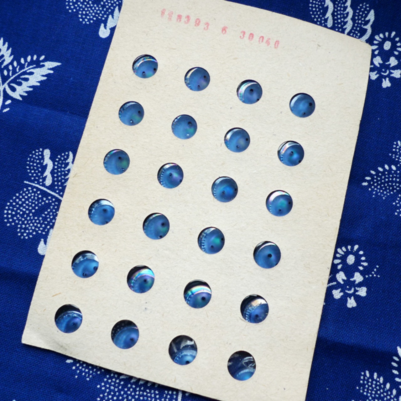 ヴィンテージ ガラスボタン24個シート パールブルー