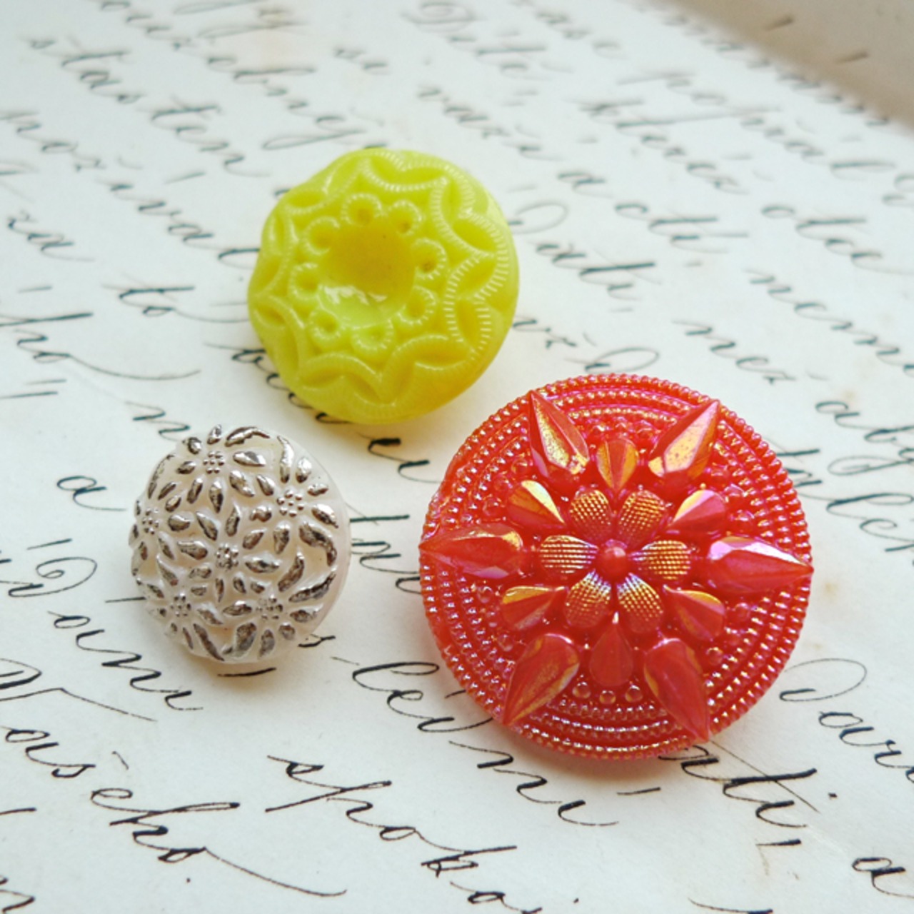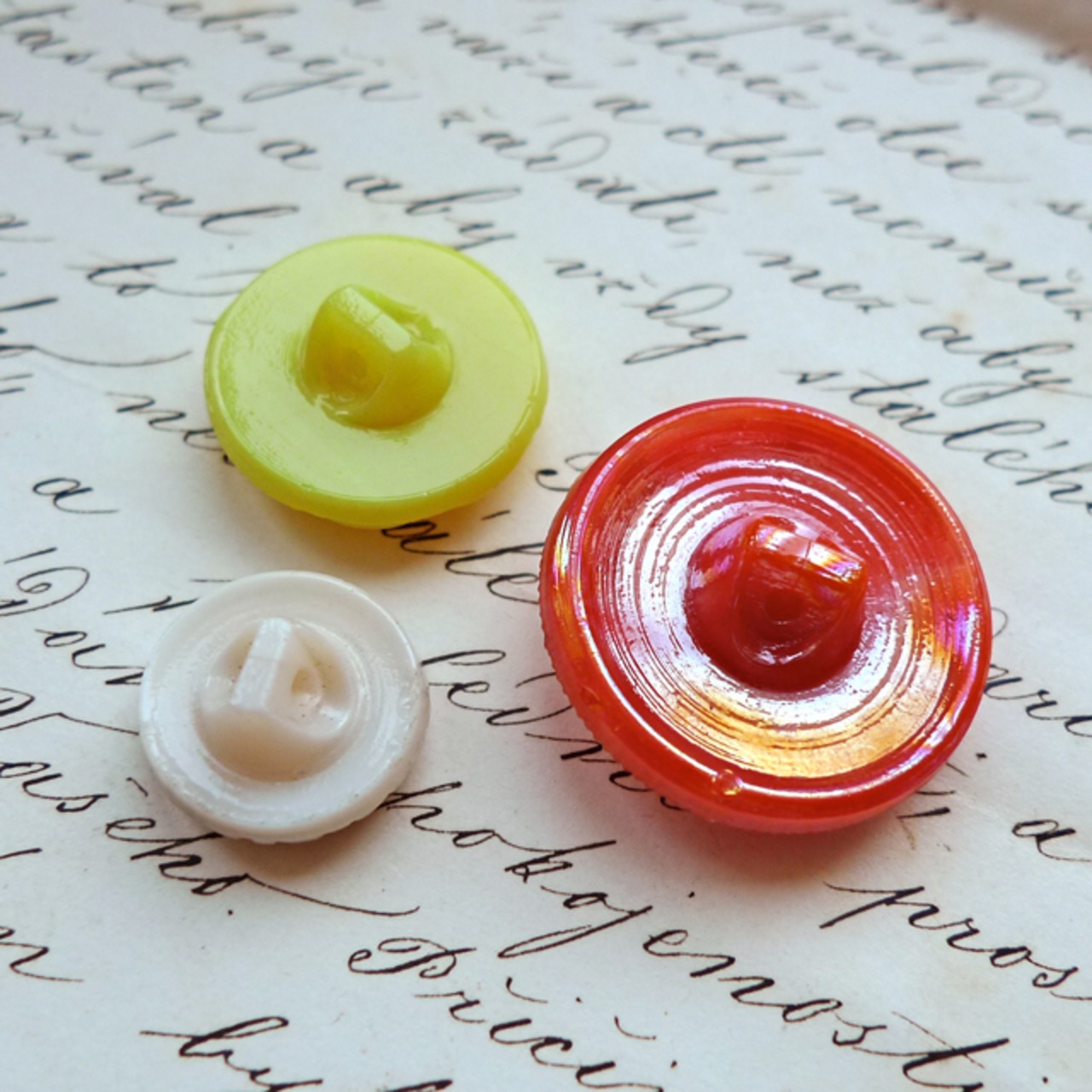 柑橘系3色のヴィンテージガラスボタン。