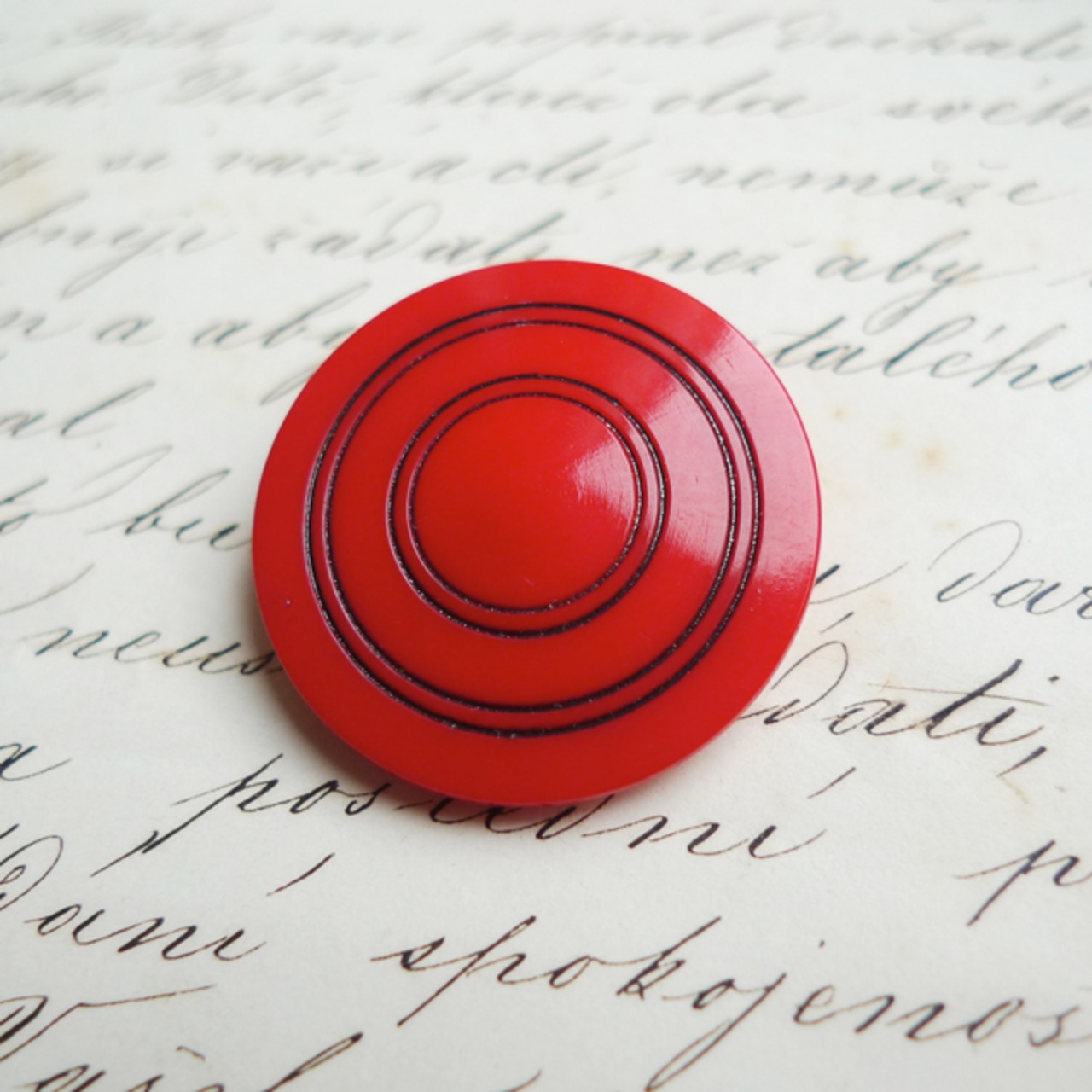 赤に丸 ヴィンテージガラスボタン