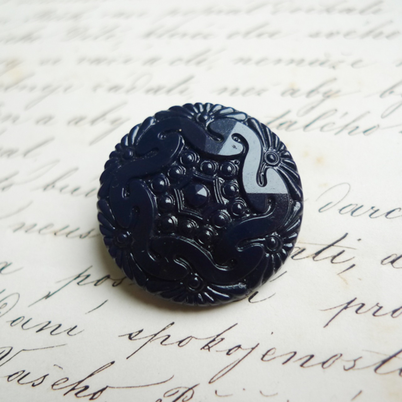 限りなく黒に近い、深ーい紺色のガラスボタン。