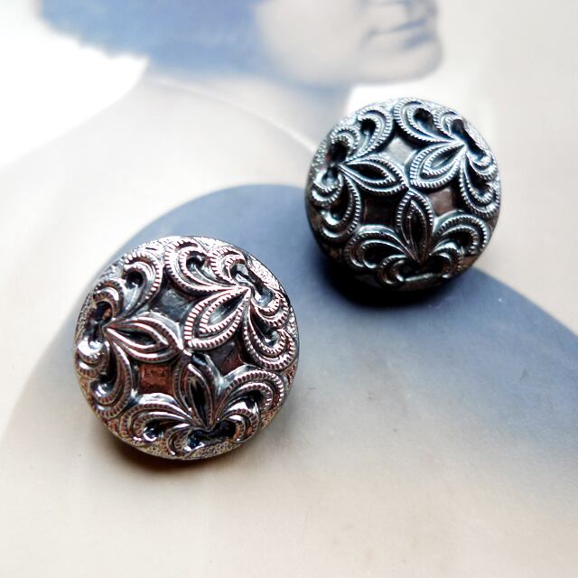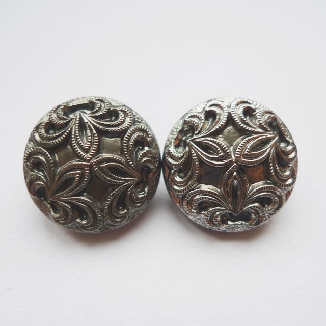 黒のガラス地にレリーフ、銀色の彩色が施されています。