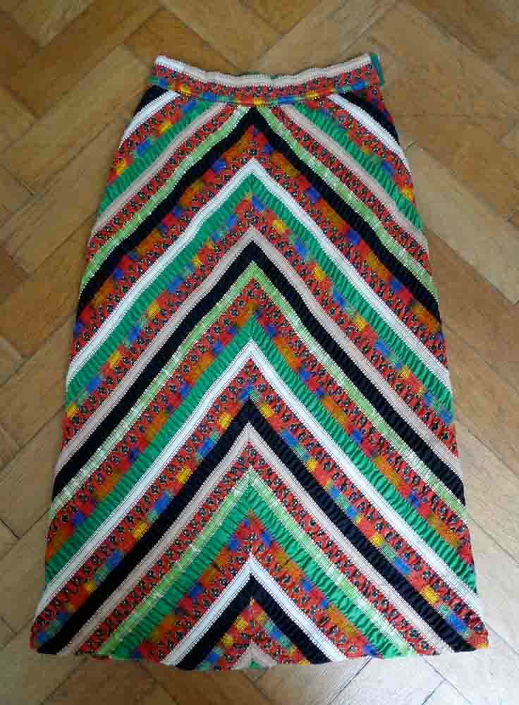 手作りのようで、腰部分、ホック等手縫いで縫われていて裏には鮮やかな緑の裏地が着いています。